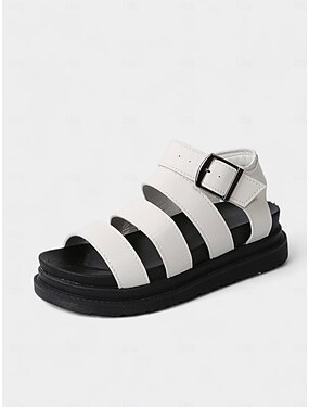 Sandálias rasteiras brancas femininas com tiras, confortáveis para férias. &sapatos de noite de resort
