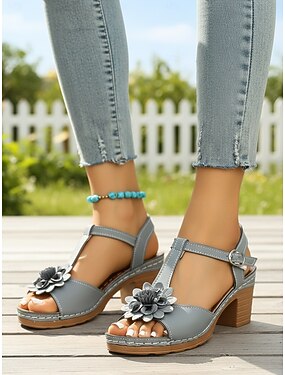 Sandálias femininas de salto grosso na cor bordô – sandálias de couro sintético com fivela e design perfurado, ideais para passeios casuais, festas de verão e uso diário.