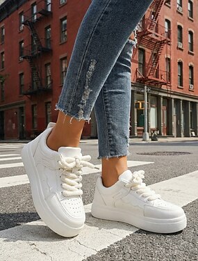 Tênis plataforma branco feminino - calçado social confortável com sola grossa e cadarços largos, ideal para o dia a dia na cidade e para deslocamentos urbanos. &caminhada casual pela cidade