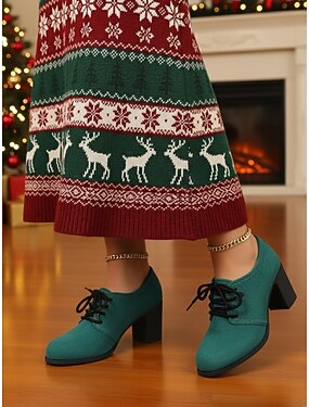 Sapatos femininos verdes de salto com cadarço – sapatos elegantes de salto alto para o Natal, festas de fim de ano, passeios casuais e moda de inverno