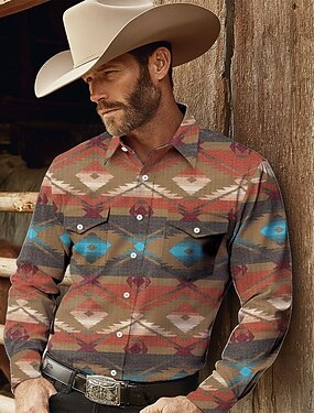Homens asteca Étnico Cultura indiana Camisa Social camisa ocidental Camisa de caubói Manga Longa Vintage retrô Casual Ao ar livre Roupa de Trabalho Primavera Outono Aberto para a Lateral Dois bolsos