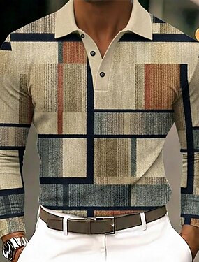 Homens Bloco de cor Camisas Polo Manga Longa Camisas polo Lapela Business casual Ao ar livre Roupa Esportiva Roupa Diária Impressão 3D Botões Primavera Outono Azul Roxo Marron