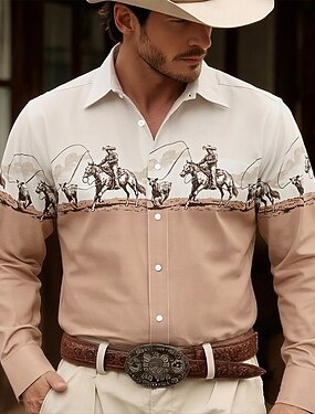 Homens Cowboy Montando Cavalo Camisa Social camisa ocidental Camisa de caubói Manga Longa Vintage retrô Casual Ao ar livre Roupa de Trabalho Primavera Outono Aberto para a Lateral Impressão 3D Camisa