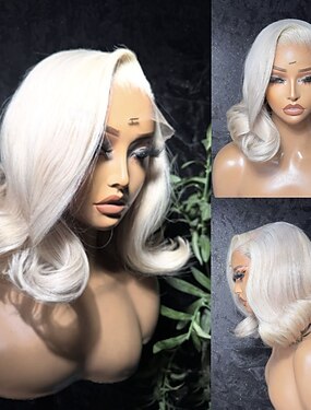 Peruca de cabelo humano com fecho 5x5, lace frontal 13x4, corte bob curto, repartição livre, cabelo brasileiro ondulado loiro acinzentado com baby hair, linha capilar natural, 100% virgem, sem cola,