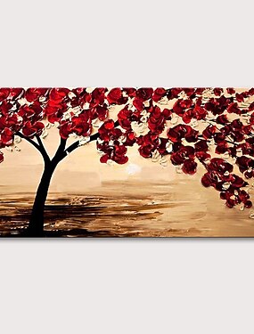 Pintura a Óleo Pintados à mão Panorâmico horizontal Paisagem Floral / Botânico Moderno Incluir moldura interna