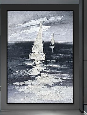 Pintura a óleo artesanal Mintura, com textura abstrata, representando paisagem litorânea, em tela. Arte de parede moderna para decoração de casa. Pintura enrolada, sem moldura e sem esticar.