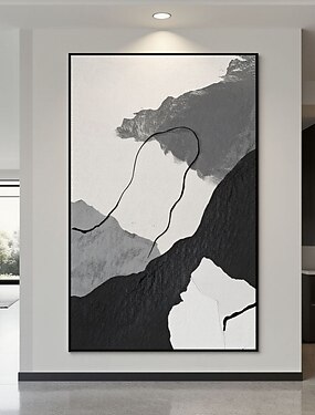 Pintura a óleo minimalista abstrata em preto e branco, feita à mão, sobre tela, arte moderna para decoração de sala de estar ou escritório.