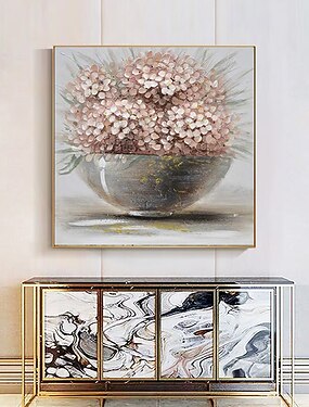 Pintura a Óleo Pintados à mão Quadrada Floral / Botânico Moderno Tela enrolada (sem moldura)