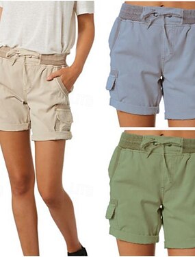 Mulheres Bermudas chinês Calção Calças Férias Básico Conforto Curto Cintura Alta Tecido Com Cordão Conforto Com Stretch Diário Casual / Diário Azul carmim Adamascado Preto Verão Primavera Normal