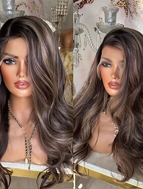 Peruca de cabelo humano virgem brasileiro 100%, com fecho de renda 5x5 e frontal de renda 13x4, nas cores preto e castanho escuro, com baby hair, linha capilar natural e sem cola. Ideal para mulheres.