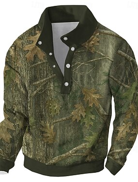 Homens camuflagem Côr Camuflagem Moletom Tático Caça Manga Longa Gola Alta Ao ar livre Esportes Azul Verde Tropa Botões Outono Inverno Designer S M L XL XXL 3XL
