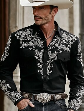 Homens Estampado Cashemere Estampa floral Étnico Camisa Social camisa ocidental Camisa de caubói Manga Longa Vintage retrô Casual Ao ar livre Roupa de Trabalho Primavera Outono Aberto para a Lateral