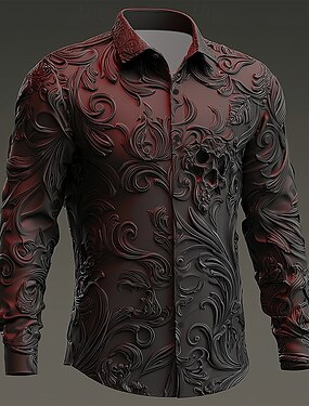 Homens Textura Redemoinho 3D Floral Intrincado Camisa Social camisa de botão Manga Longa Vintage retrô Estilo gótico escuro Ao ar livre Feriado Primavera Outono Aberto para a Lateral Impressão 3D