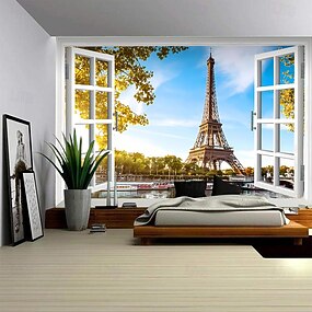 Tapeçaria de parede 3D com vista noturna da cidade, arranha-céus de Nova York, lua e estrelas, arte urbana moderna para decoração de quarto e sala de estar.