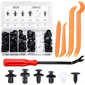 Conjunto de 100 peças de presilhas de fixação para para-choque de carro, incluindo presilhas de pressão, rebites de nylon para para-choque nos tamanhos mais populares e removedores de fixadores para a