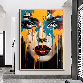100% pintado à mão arte de parede rosto colorido arte de parede mulher retrato pintura em tela abstrata menina decoração de parede pintura a óleo arte decoração de casa pronta para pendurar ou tela