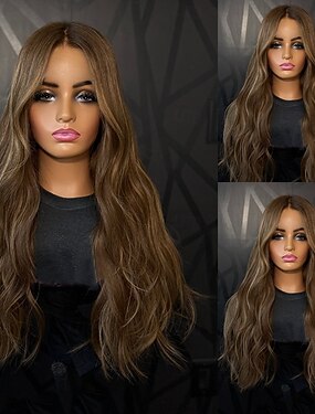 Cabelo humano remy 13x4 Lace Front Peruca Com Franjas Cabelo Brasileiro Ondulado Multi Cores Peruca 130% 150% Densidade do Cabelo Cabelo com Luzes / Reflexos 100% Virgem Sem cola Para Feminino Longo