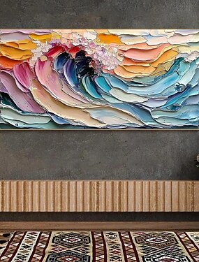 Mintura pinturas a óleo abstratas coloridas texturizadas feitas à mão em tela, arte de parede, decoração, imagem abstrata moderna para decoração de casa, pintura enrolada sem moldura e sem esticar