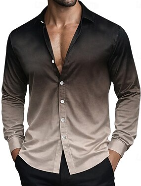 Homens Camisa Social Blusa de cetim Saia camisa de botão Camisa de formatura Gradiente Casamento Formal Rosa Claro Azul Claro Preto Azul Manga Longa Aberto para a Lateral Todas as Estações Roupa