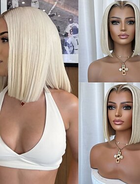 Cabelo humano remy 13x4 Lace Front 4x4 Lace Front Peruca Prumo Bob curto Parte lateral Cabelo Brasileiro Liso Loiro Peruca 130% 150% 180% Densidade do Cabelo com o cabelo do bebê Riscas Naturais Sem