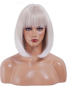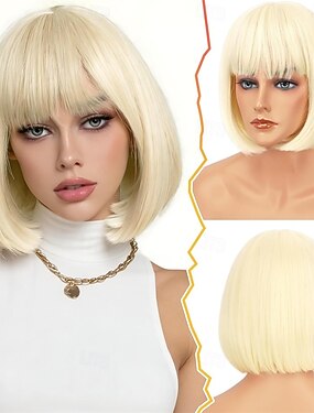 Perucas curtas loiras estilo bob - peruca curta loira platinada estilo bob com franja para mulheres - peruca de cabelo sintético macio e natural de 30 cm (12 polegadas) na altura do queixo, ideal para