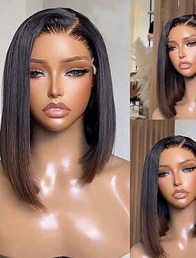 Cabelo Humano Fechamento 5x5 13x4 Lace Front Peruca Bob curto Cabelo Brasileiro Liso Natural Peruca 150% 180% Densidade do Cabelo com o cabelo do bebê Cabelo Ombre Riscas Naturais 100% Virgem Sem cola