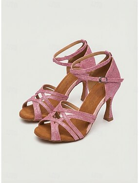 Sapatos de dança latina femininos roxos com glitter, com tiras no tornozelo e bico aberto, ideais para salsa, tango e dança de salão. & desempenho
