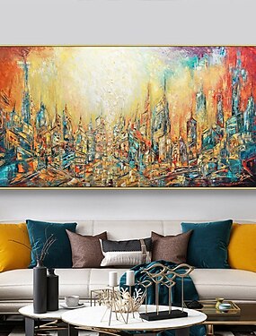 Mintura pintura a óleo artesanal sobre tela decoração de arte de parede moderna cidade abstrata imagem de paisagem para decoração de casa rolada sem moldura pintura não esticada