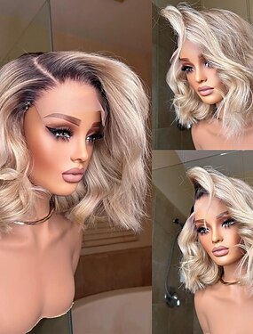 Cabelo humano remy Fechamento 5x5 13x4 Lace Front Peruca Bob curto Cabelo Brasileiro Ondulado Loiro Peruca 130% 150% Densidade do Cabelo Cabelo com Luzes / Reflexos Riscas Naturais 100% Virgem Sem