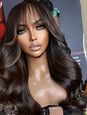 Cabelo Humano Fechamento 5x5 13x4 Lace Front Peruca Parte livre Com Franjas Cabelo Brasileiro Ondulado Marrom Escuro Peruca 150% 180% Densidade do Cabelo com o cabelo do bebê Riscas Naturais 100