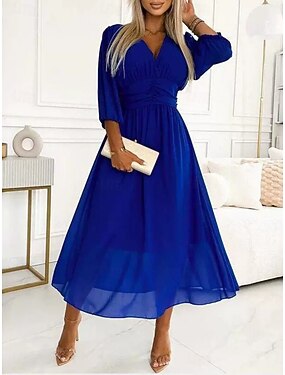Mulheres Vestido midi Vestido Coquetel Vestido de convidada de casamento Vestido de chiffon Elegante Moda Moderno Ao ar livre Férias Para Noite Normal Tecido Manga 3/4 Decote V Azul Preto Verde Verão
