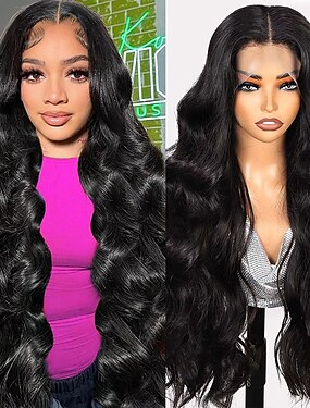 Cabelo humano remy Fechamento 5x5 13x4 Lace Front Peruca Parte do meio Cabelo Peruviano Ondulação Larga Preta Peruca 130% 150% Densidade do Cabelo 100% Virgem Sem cola Pré-depenado Para Feminino Longo