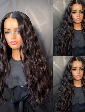 Peruca de cabelo humano Remy, feita à máquina, com ondas suaves e densidade de 150%.