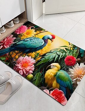 Tapete antiderrapante estilo nórdico em flanela com estampa de flores e pássaros, à prova de poeira, ideal para quarto, banheiro, cozinha, hall de entrada, sala de estar e decoração de casa.