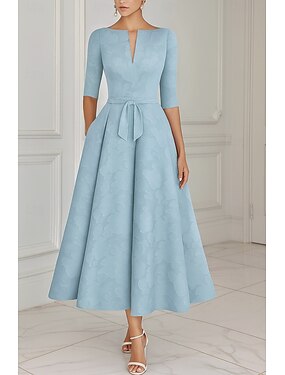 Linha A Até o Tornozelo Vestido de festa Vestido Coquetel Vestido de convidada de casamento Vestido Para Mãe dos Noivos Meia Manga Gola Redonda Elegante Convidado do casamento Festa de Casamento