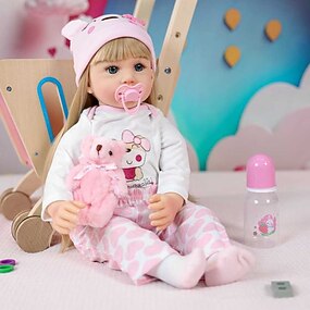 Bonecas Bebês Reborn - Boneca de Silicone de 22 Polegadas Corpo Macio Boneca de Bebê Realista Menina Linda Cabelo Loiro Menina Bebe Reborn de Silicone Real Life Bonecas de Bebê com Caixa de Presente