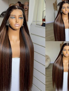 Cabelo Humano Fechamento 5x5 13x4 Lace Front Peruca Parte do meio Cabelo Brasileiro Liso Marrom Multi Cores Peruca 150% 180% Densidade do Cabelo com o cabelo do bebê Cabelo Ombre Cabelo com Luzes