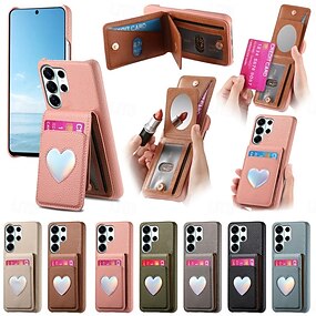 telefone Capinha Para Samsung Galaxy S26 S26 Plus S26 Ultra Capa traseira Capa para Cartão Wallet Com Suporte Espelho Coração Retro TPU Couro PU