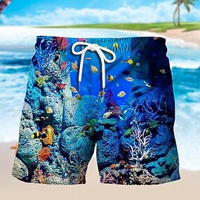 Homens oceano Estampas Abstratas Peixes Calção Justo de Natação Shorts de Natação Bermuda de Surf Cintura Média Havaiana Boho Casual Diário Feriado Com Cordão com forro de malha Cintura elástica