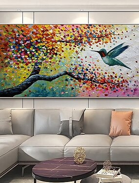 Pinturas a óleo artesanais Mintura, texturizadas e coloridas, com tema de grafite, representando árvores e beija-flores, em tela para decoração de parede. Quadros abstratos modernos para decoração de