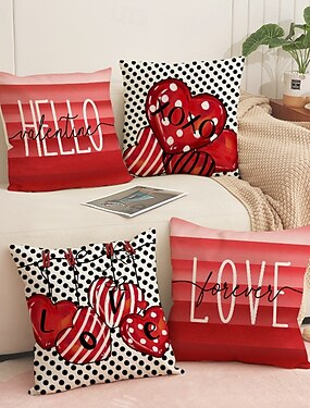 Capa de almofada para o Dia dos Namorados, almofada com estampa de coração vermelho, decoração aconchegante para sofá, almofada decorativa macia para sala de estar. &quarto, presente de dia dos