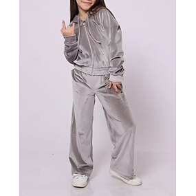 2 Peças Infantil Para Meninas Côr Sólida Com Cordão Conjunto de moletom e moletom Conjunto Manga Longa Roupa de rua Ao ar livre 4 anos + Outono Preto Rosa Azul Real