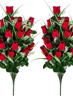 Conjunto de 2 flores artificiais para cemitério, ideais para decoração de cemitérios em dias de homenagem, colocação em lápides externas, flores decorativas para funerais, adequadas para vasos em