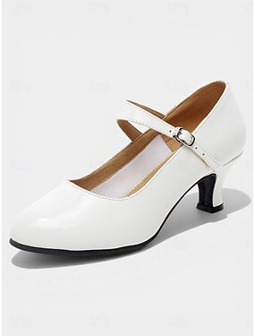 Sapatos de dança de salão brancos femininos – modelo Mary Jane de bico redondo com tira, ideais para prática profissional. & desempenho