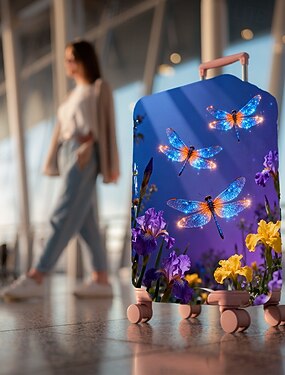 Capa protetora elástica para mala de viagem com estampa floral.