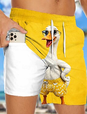 Homens Engraçado Pato animais de desenho animado Shorts Forrados Shorts de Natação 2 em 1 Shorts de Natação Cintura Média Havaiana férias na praia Bolsos laterais Com forro de compressão Cintura