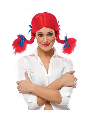 Peruca vermelha com rabo de cavalo para cosplay, ideal para festas à fantasia, para mulheres e meninas.