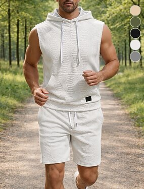 Homens Moletom Roupa de corrida Trajes de treino Com Cordão 2 Peças Cor Sólida Conjunto de roupa atlética Verão Primavera Preto Branco Treino de Ginástica Cooper Corrida Pavio Humido Respirável Sem