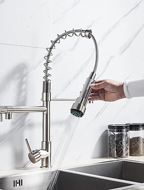 Torneira de cozinha, aço inoxidável de estilo moderno, manípulo único, um orifício, níquel escovado, enchimento de pote, deck, torneiras de cozinha retrô com água quente e fria