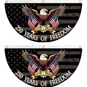 Conjunto de 2 bandeiras comemorativas do 250º aniversário, 45 x 90 cm (1,5 x 3 pés), bandeiras americanas de 1776 a 2026, bandeiras patrióticas retrô para jardim, decoração de parede, porta de entrada e áreas externas.